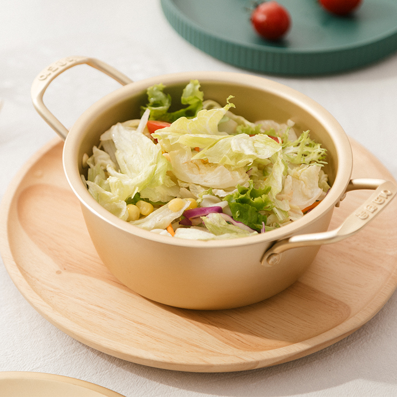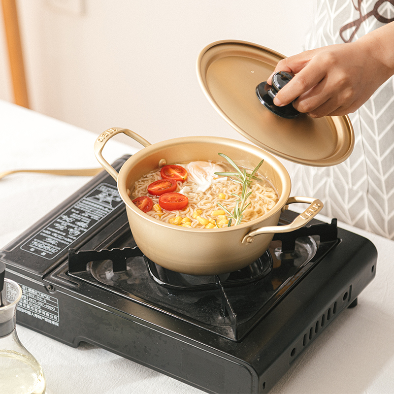 Korean Bubble Noodle Pan Lanoodle Pan Small Cooking Pan induction cooktop Oven Pan Korean Mesh Red Double Ear Bubble Noodle Pan Cooking Pan Yellow Aluminum Pan