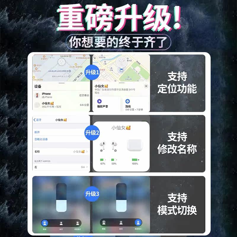 Top-fit version for three generations★HIFI no distortion noise reduction renaming positioning play-window touch wireless charging triple-truth display