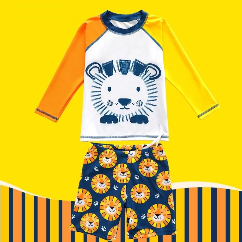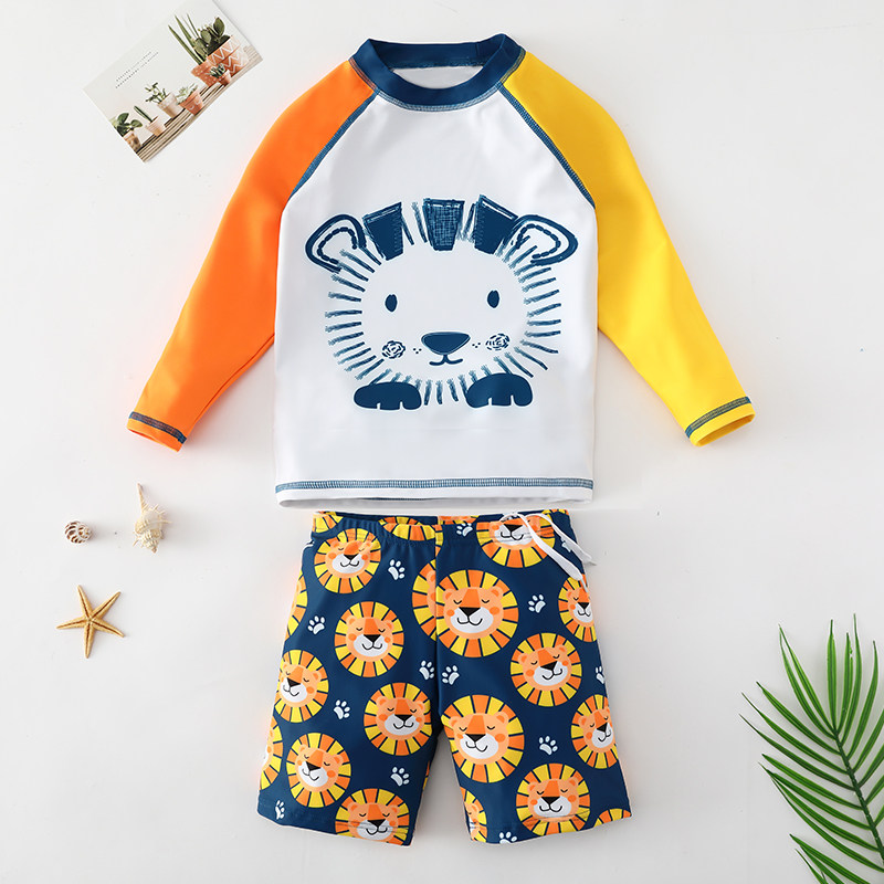 AIMER children's swimsuit boy two-piece long sleeve sunscreen swimming trunks set Zhongdabi baby cute cartoon swimsuit