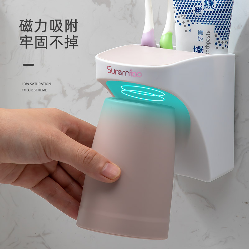 Punch-free toothbrush shelf Home Shelf Makeup Room Lovers Brief electric toothbrush cup holder wall-mounted mouthwatering cup