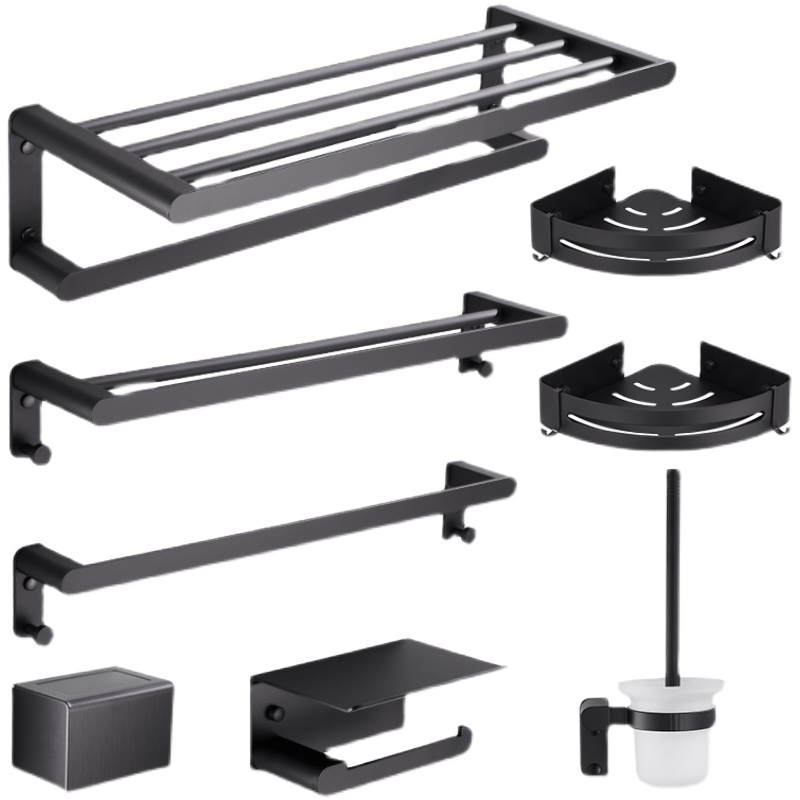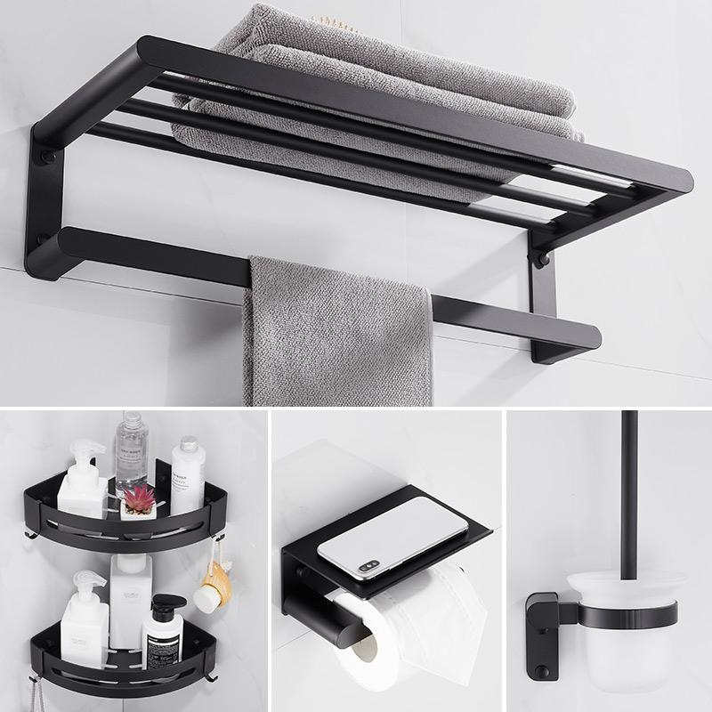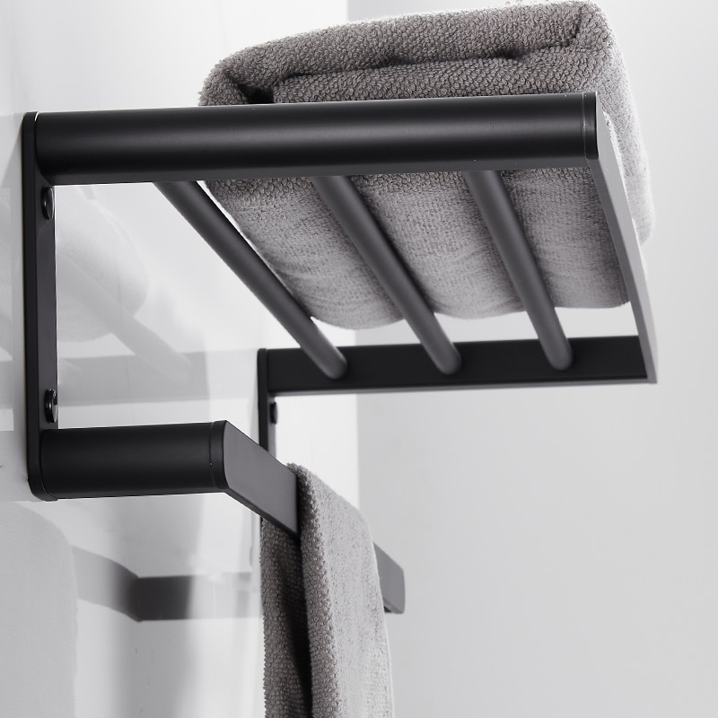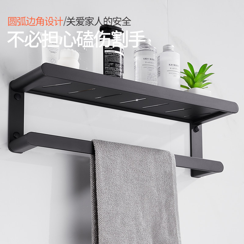 Perforated Black Towel Rack Thickened Space Aluminum Bilayer Bath Towel Rack Makeup Room Shelve Bathroom Hardware Pendant