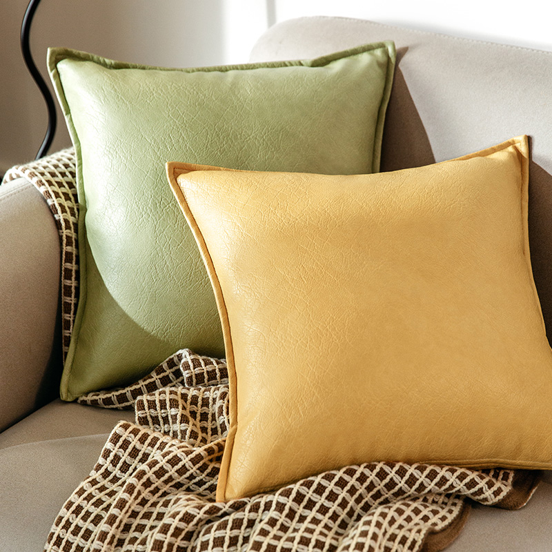 Pure Color Cow Leather Tattoo Leather Pillow Nordic Light Lavish Living Room Sofa Hug Pillow 100 Hitch Office Hug Rest Leaning Back Cushion