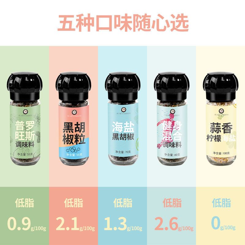 5 flavors each one bottle (bring your own grinding) sea salt black pepper * 1 (bring your own grinding) pure black pepper * 1 (bring your own grinding) Fitness Mix Seasoning * 1 (bring your own grinding) Provence vanilla * 1