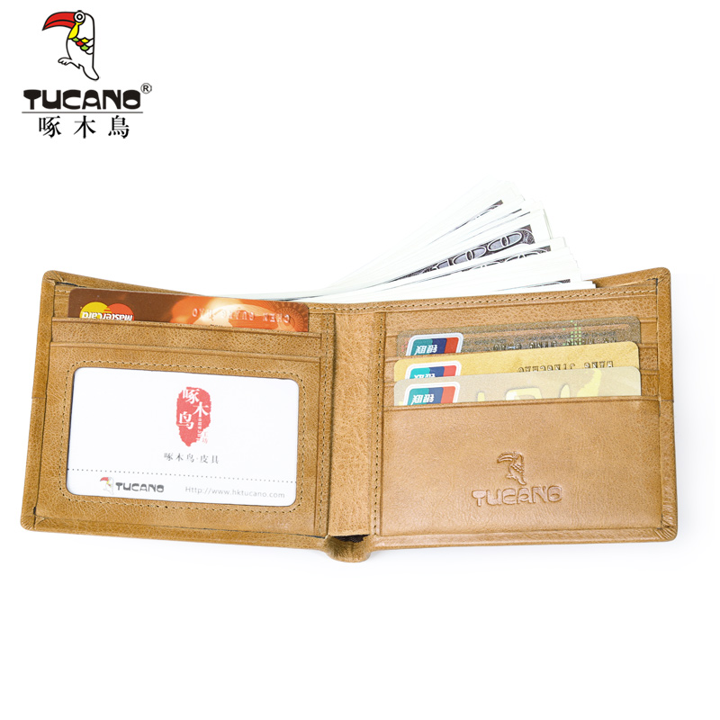 Woodpecker Male Wallet Short head layer cow leather money clip men's leather clips Young students cross the business wallet trend