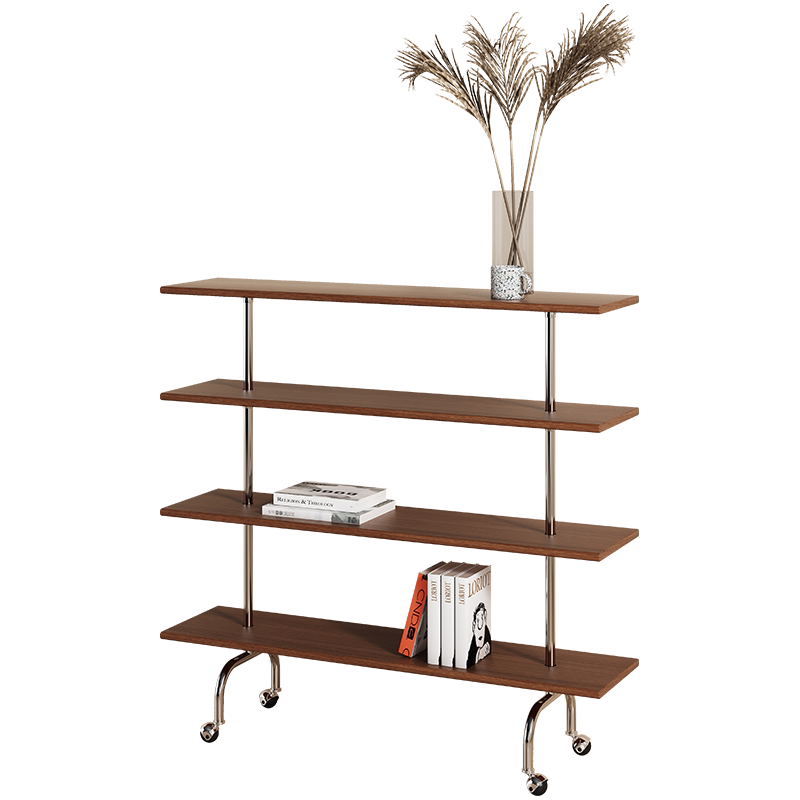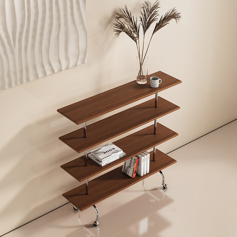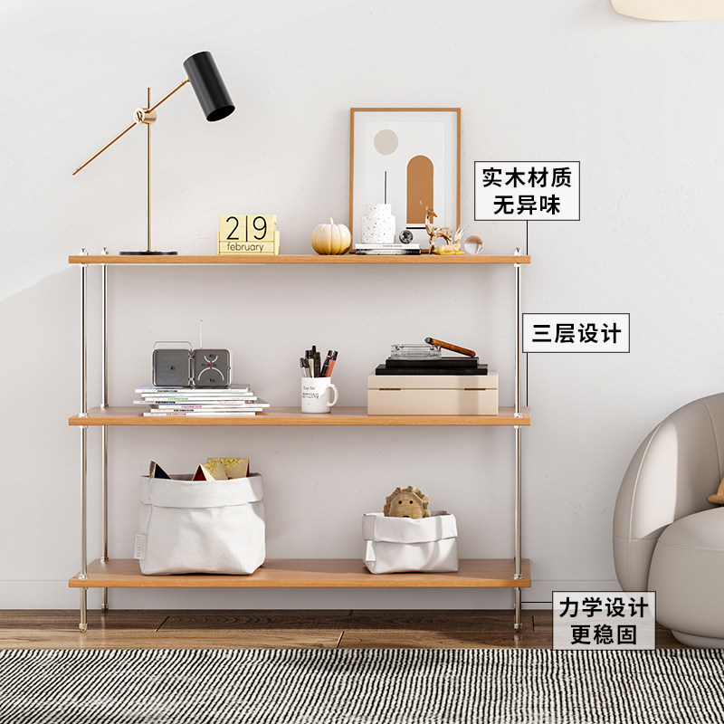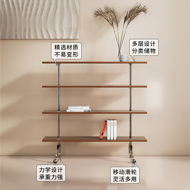 Modern Caisecai Middle Antique Floor Shelf Ins Mobile Cart Solid Wood Bookshelf Simple Magazine Display Shelf