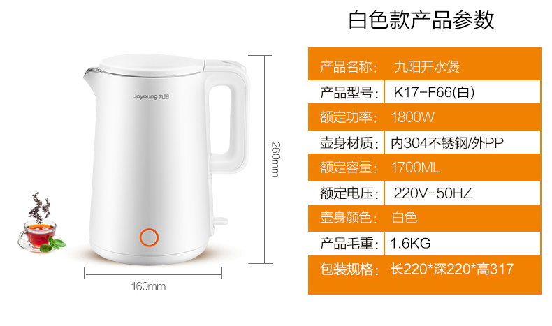 Joyoung Jiuyang K17-F65 F66 seamless liner 304 stainless steel electric kettle