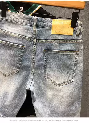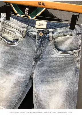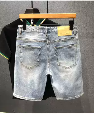 Tide brand blue denim shorts men's summer thin loose casual middle pants men's five straight jeans pants