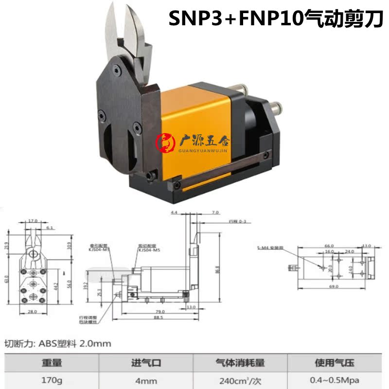 Spot cylinder SNP3 cutter head FNP10 micro pneumatic shear horizontal sliding water mouth gas scissors gas shear head
