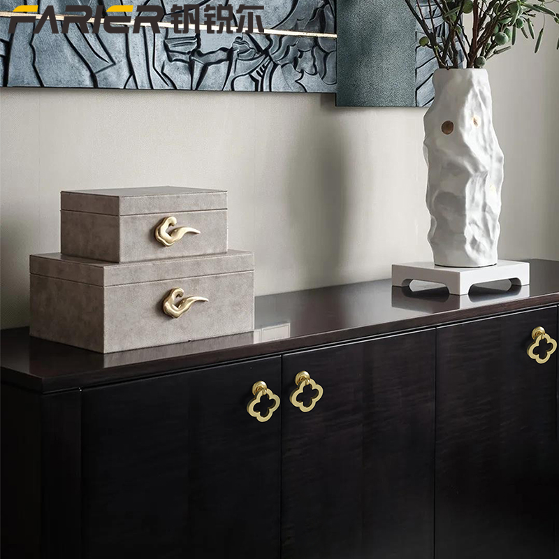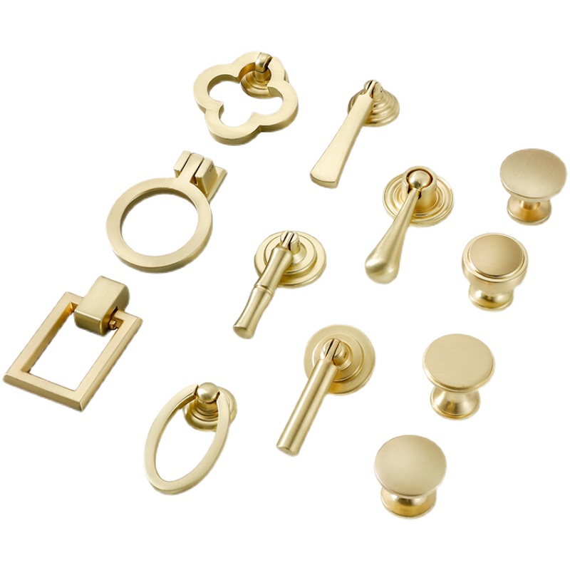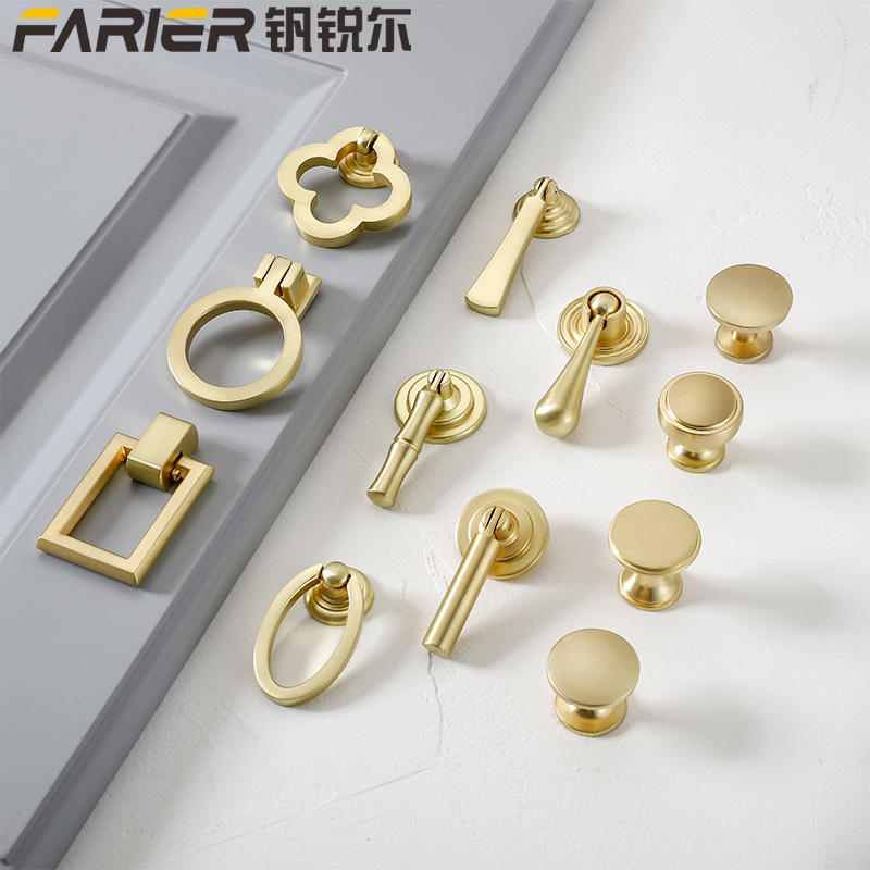 Brief High-end Chinese Golden Bronze Color Drawer Whole Cabinet Bed Head Cabinet Door Single Hole Rings Concealed zinc alloy handle