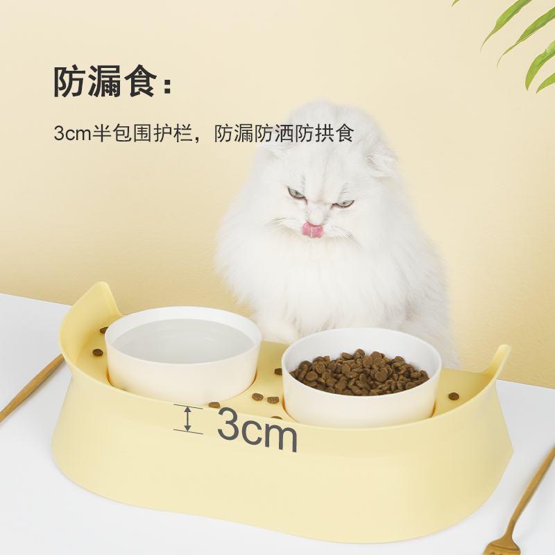Pieke cat bowl pet double bowl ceramic neck protection food bowl dog bowl cat anti-overturn drinking bowl cat rice bowl basin