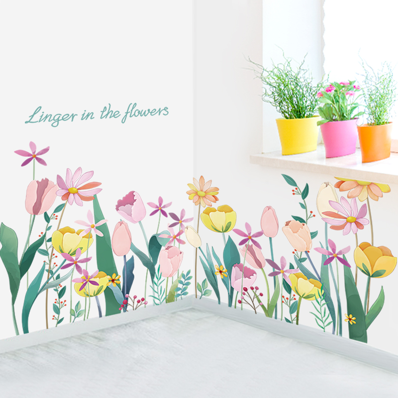 Ocean waistline Daisy skirting board Underwater world skirting board Tulip fence Green leaf skirting board White fence sunflower skirting board Piano dancer waistline sticker Wood fence sunflower skirting board Green