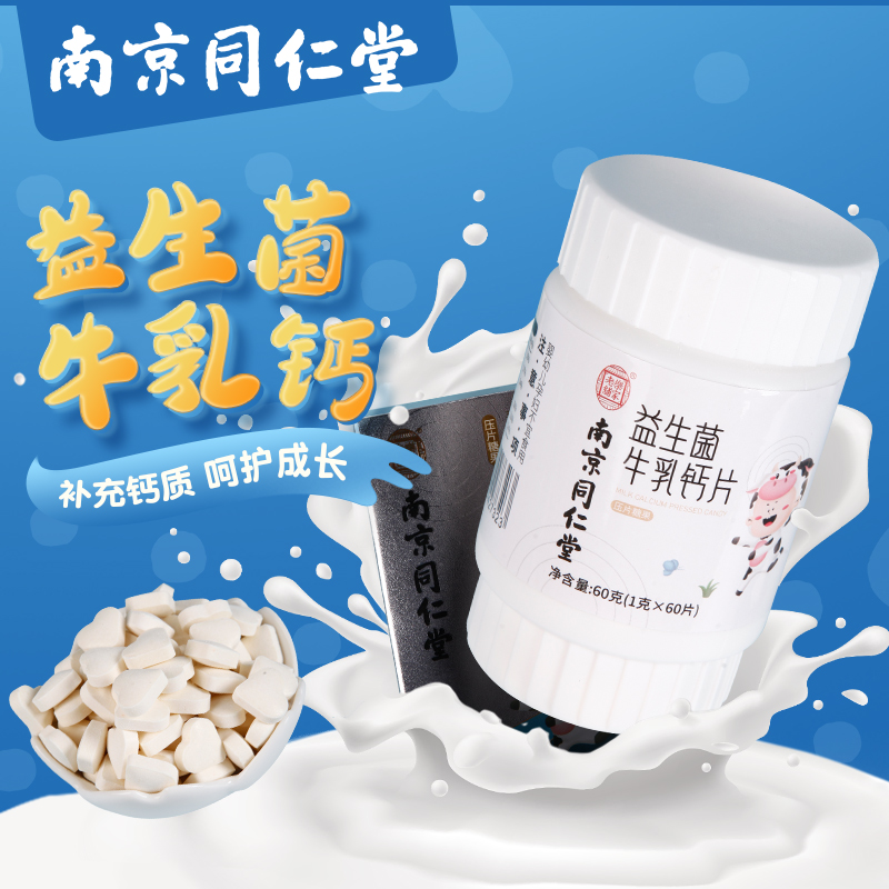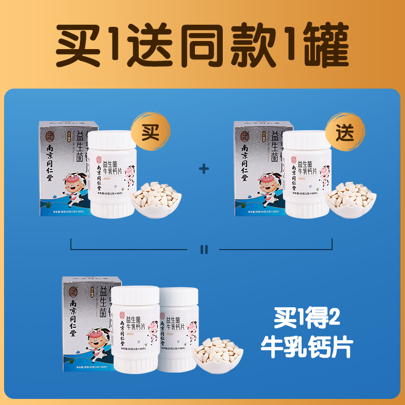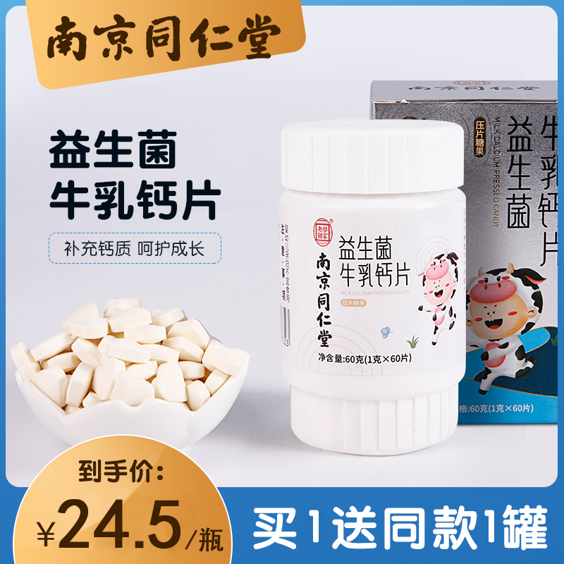 (Buy 1 hair 2) Nanjing Tongrentang probiotic cow's milk calcium tablet 60 middle aged children student calcium chewable tablets
