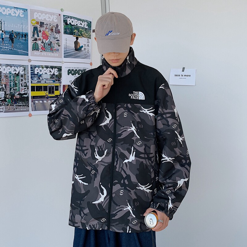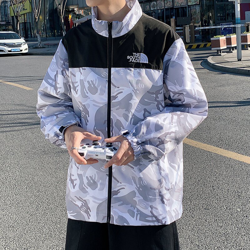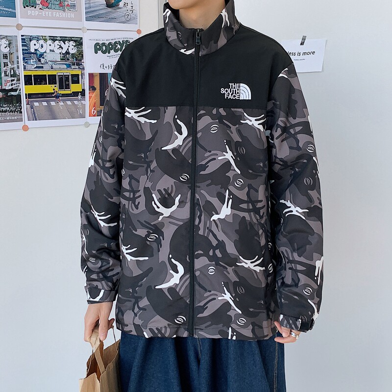 Hooded ins jacket male couple student tide brand Hong Kong style camouflage simple spring and autumn new stand-up collar shirt jacket male