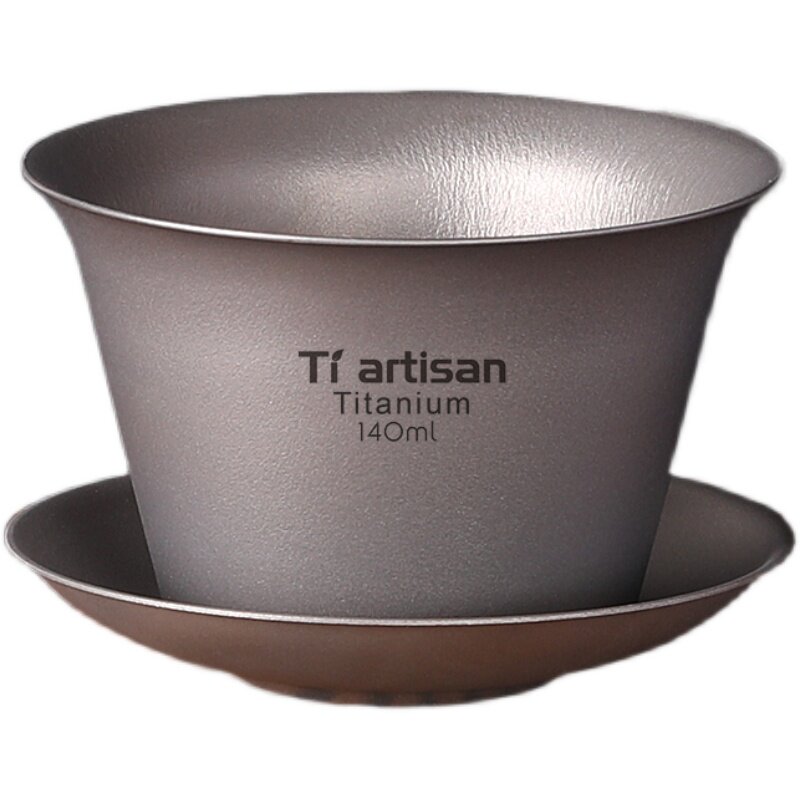 Titanium Craftsman Outdoor Pure Titanium Chinese Double Insulation Kung Fu Tea Cup Tea Cup Titanium Bowl Tray Cover Bowl Household with Cover