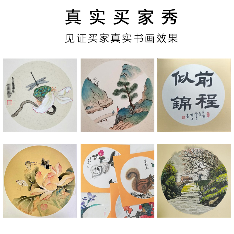 Jiangzuo rice paper Chinese painting 30 sheets of thickened cardboard lenses raw rice paper art calligraphy watercolor pen works special half-cooked free mounting square round blank fine brush cooked Xuan children's mirror