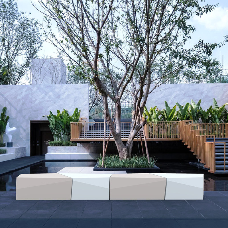 Fibreglass Rhomboid Section Seat Mall Casual Chair Outdoor Park Special Sitting Stool Public Space Lounge Benches