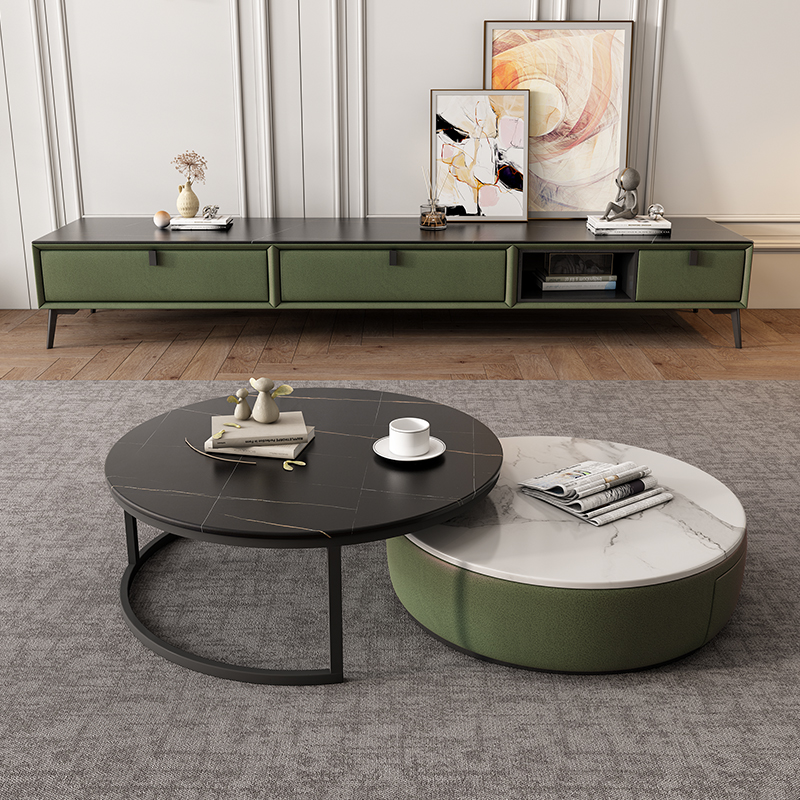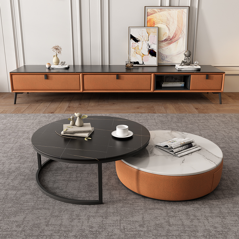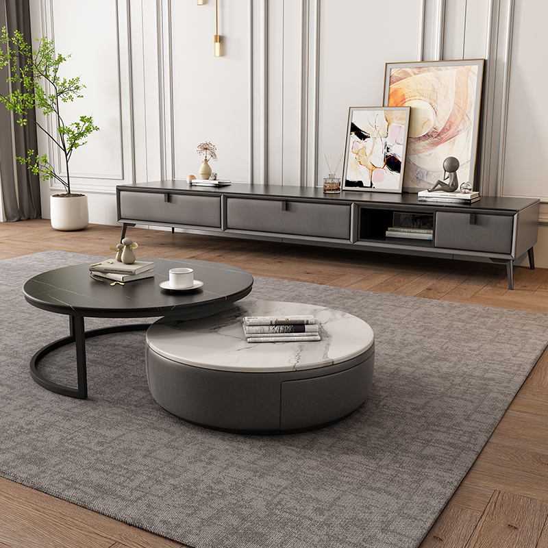 Light extravagant rock plate tea table TV cabinet combination extremely simple modern living room with telescopic storage size round tea table cupboard