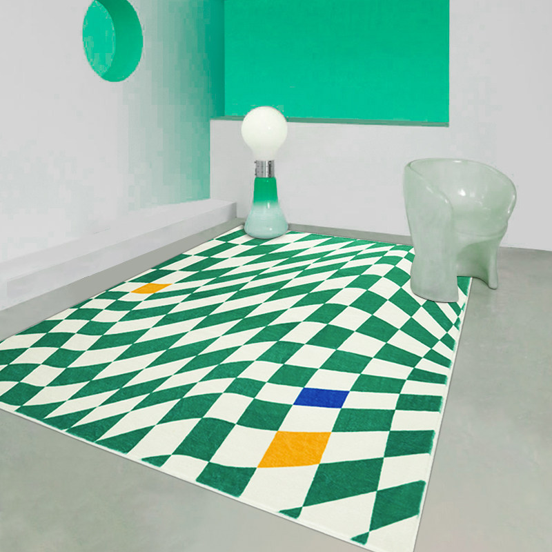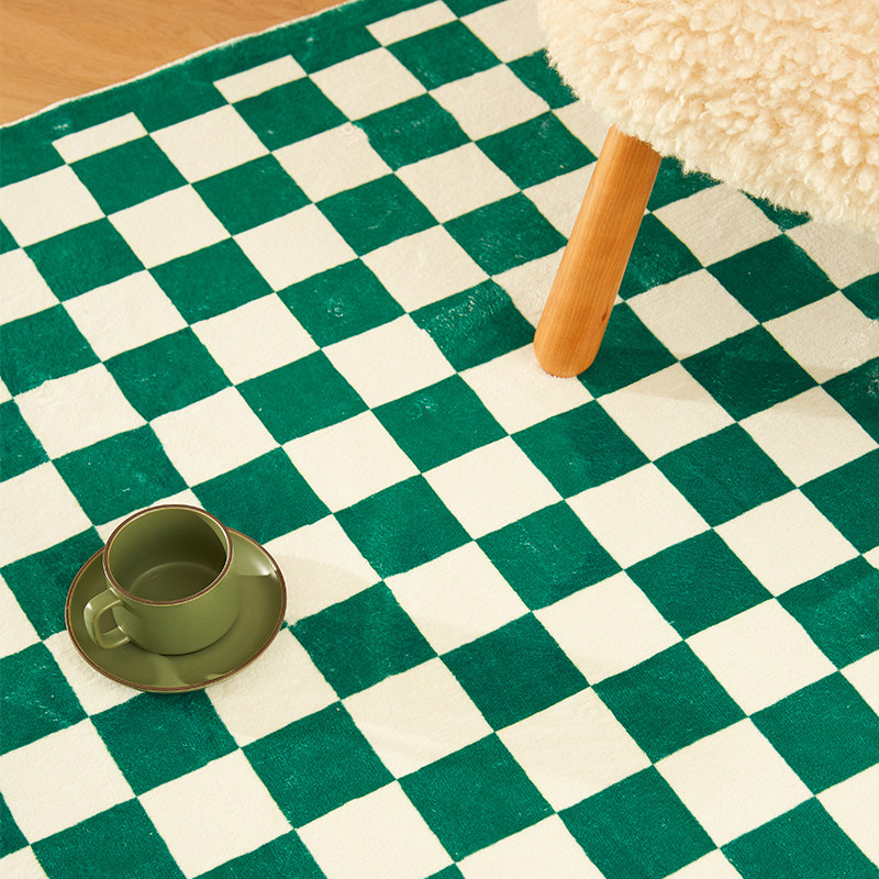 Original design living room medieval checkerboard carpet Nordic minimalist ins bedroom green plaid bedside pad net red