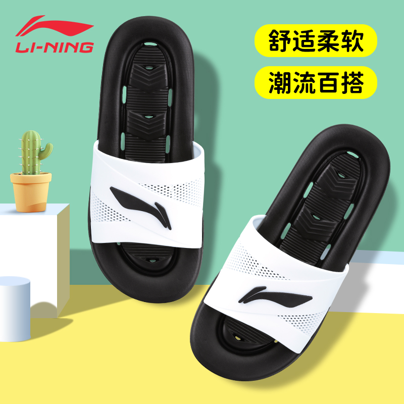 Li Ning slippers men's sports wear, step on shit, indoor home non-slip bathroom bath men's one-word slippers men