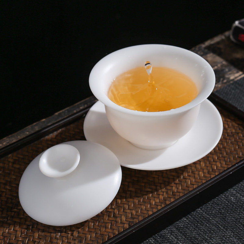 Deche Ariya Yuxian white porcelain bowl large single cup cup cup cup ceramic kung fu tea bowl