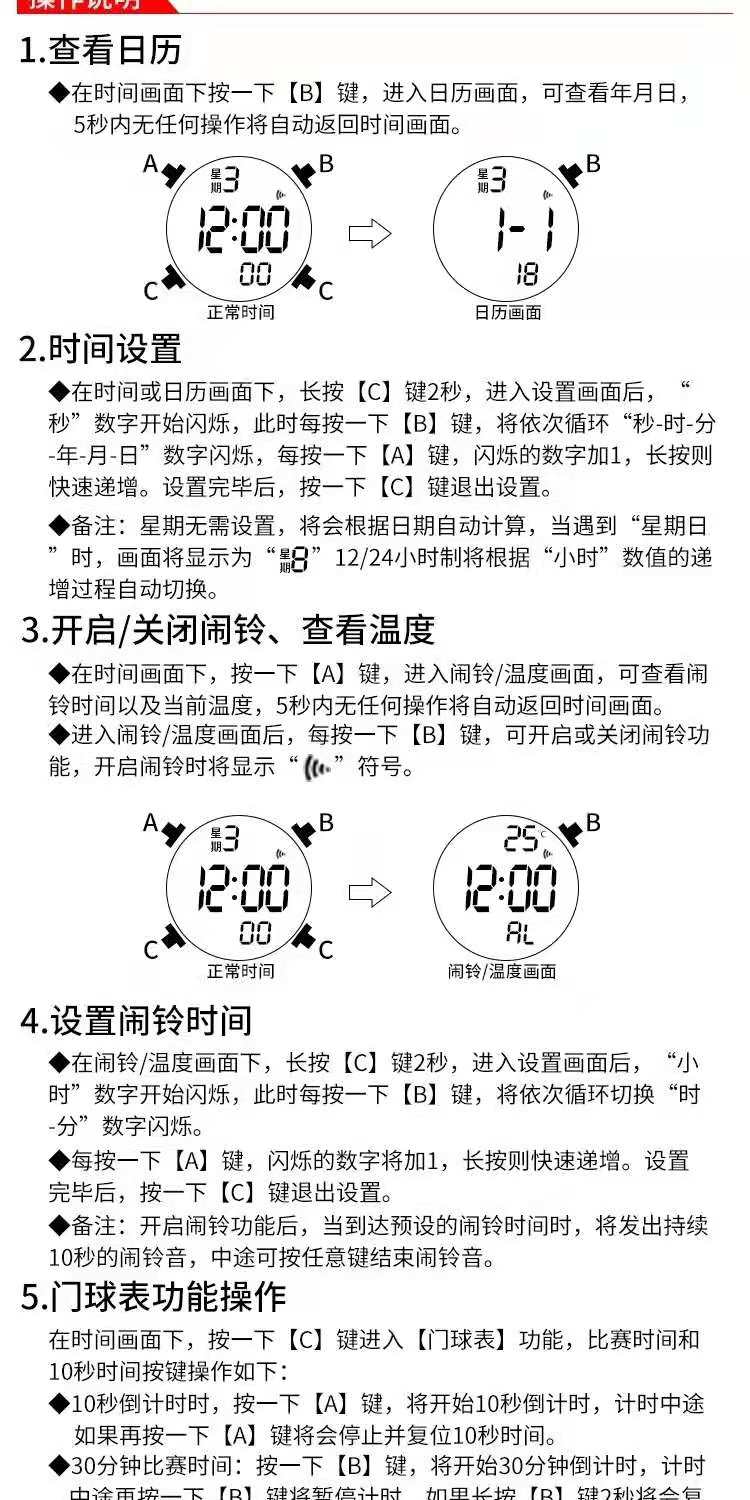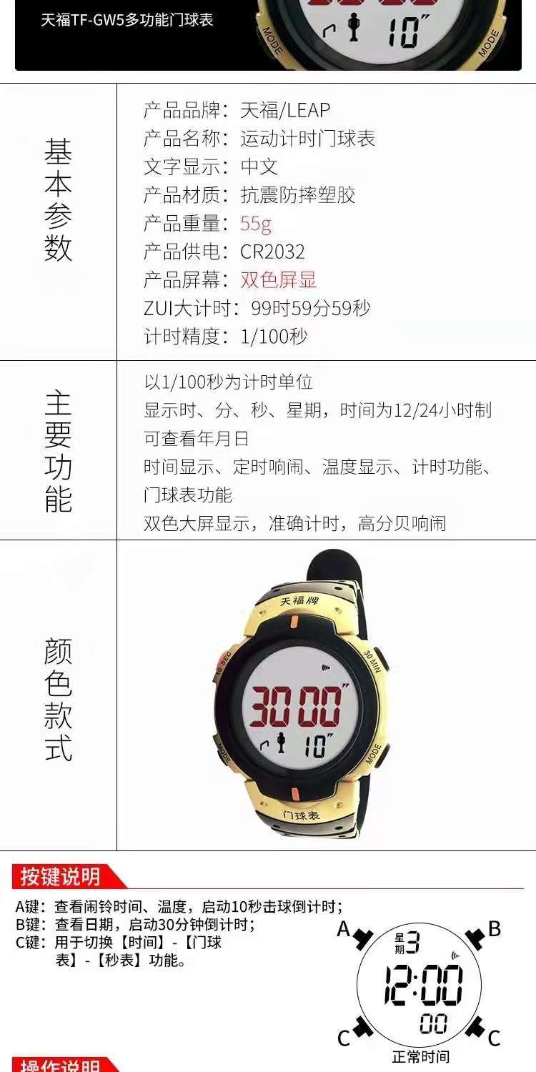 Tianfu gateball watch GW5 style timing display temperature week wrist watch