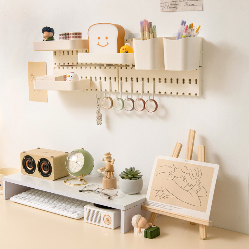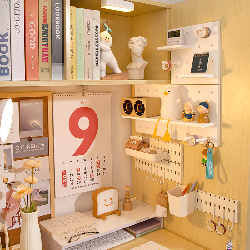 The hole board rack is fixed on the grid office on the wall, the upper and lower bunks live in the university dormitory dormitory artifact