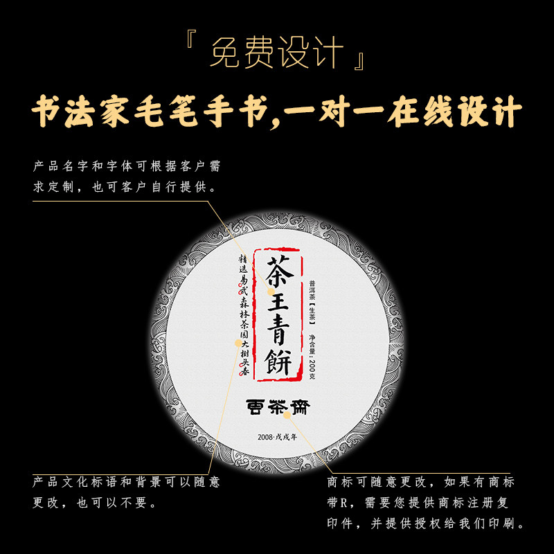 Customize free design Yunnan Pu'er tea raw tea 2008 Yiwu ancient tree spring tea raw tea 5 pieces a kilo