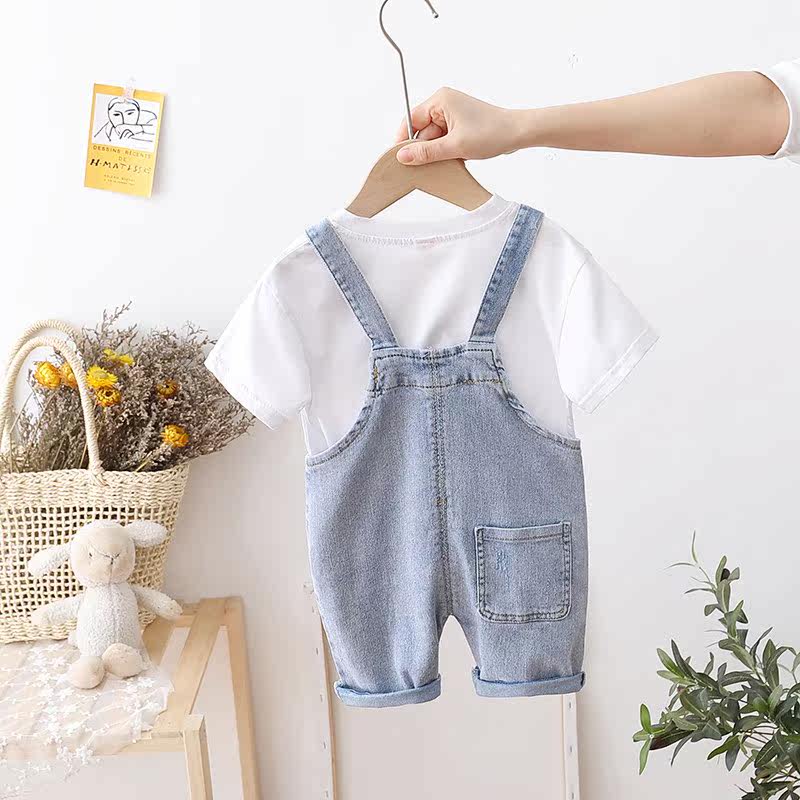 Baby soft denim holding baby bag pants summer thin section boy treasure jeans baby pants Western style trendy 1 year old children summer clothes 2