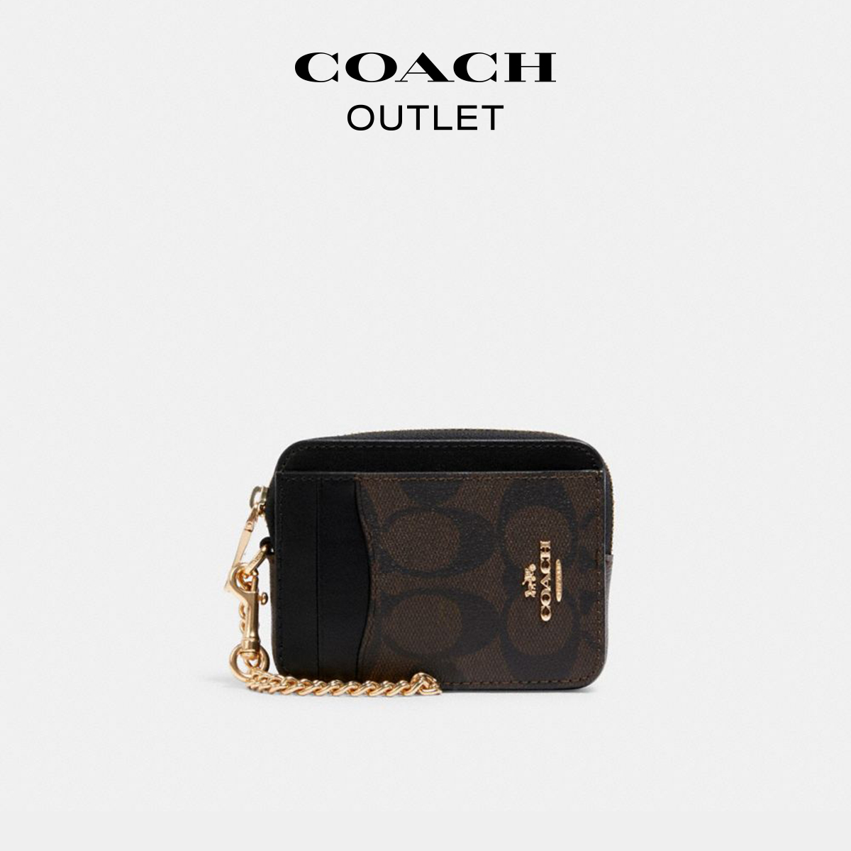 (New Year's gifts) COACH Coco-le-au-Lady classic logo zipped card bag-Taobao