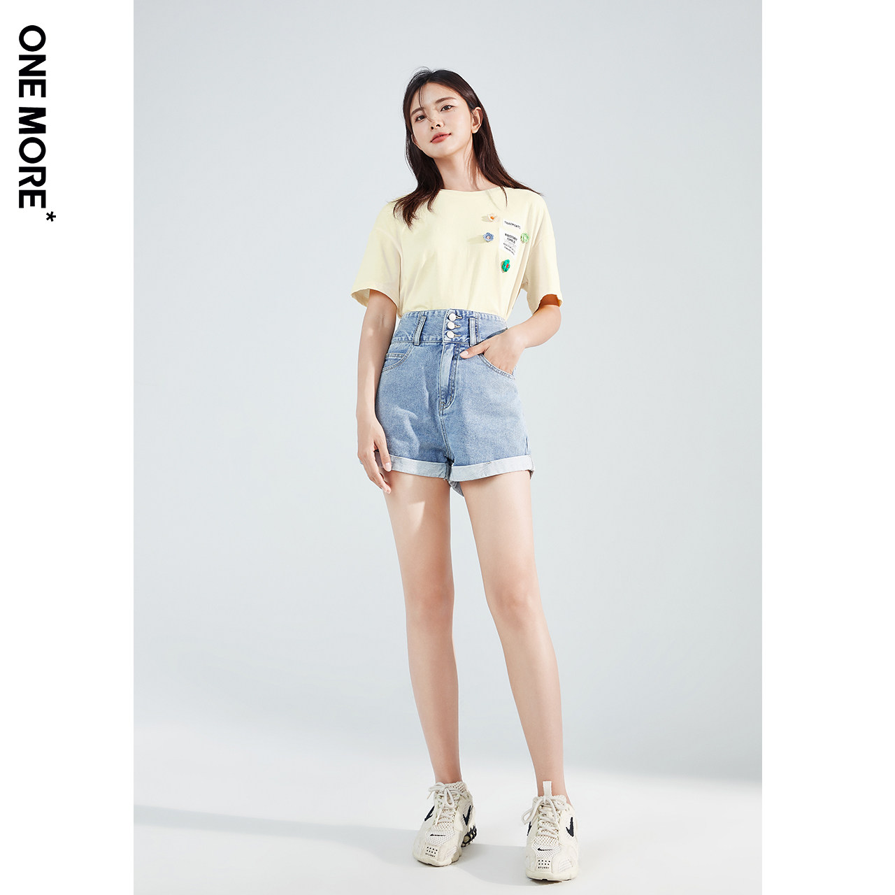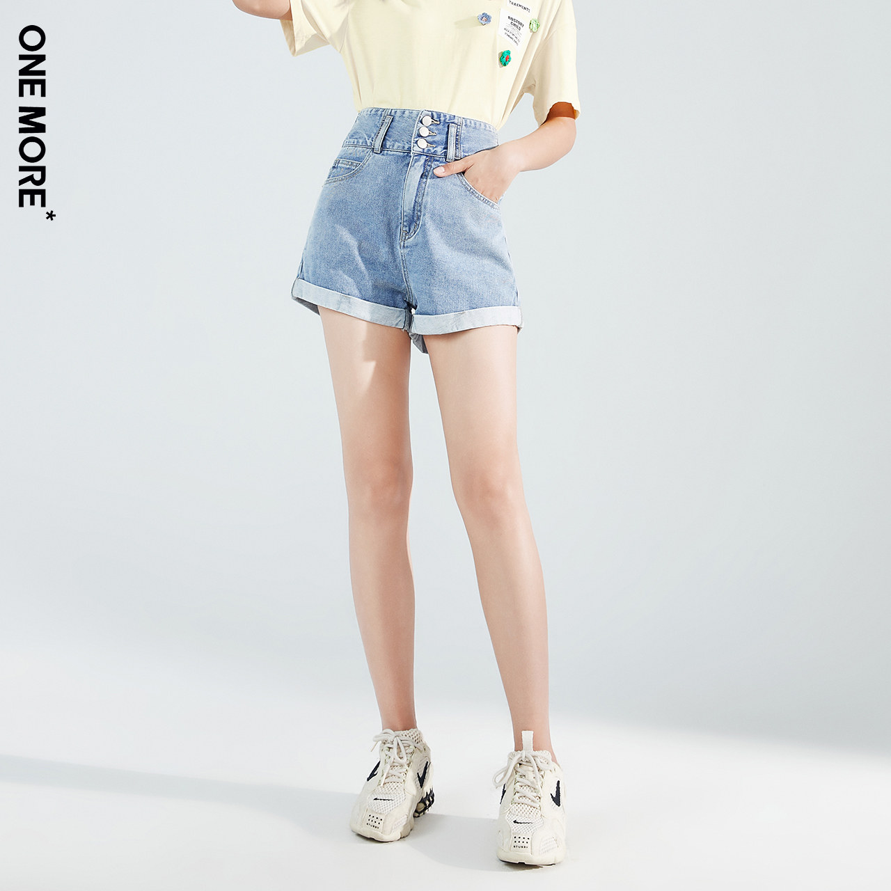 ONEMORE2021 summer new high waist slim wide leg denim shorts female small loose trendy ins pants