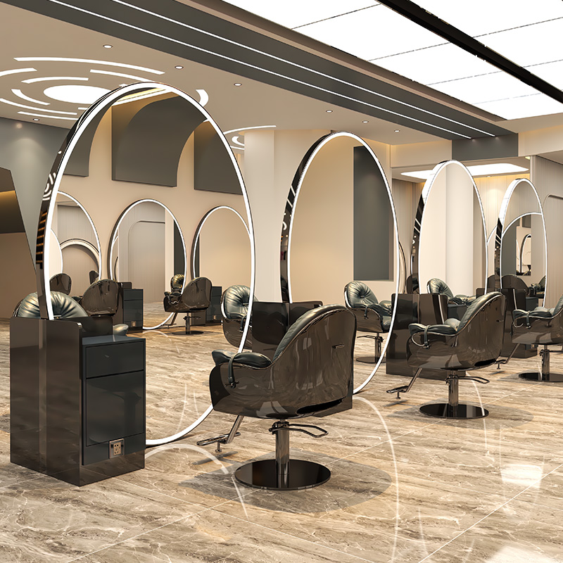 Net Red Beauty Hair Shop Mirror Desk Single-Sided Floor Mirror Nordic Wind Beauty Hair Mirror Hair Salon Special Hairdresden Round Mirror Table