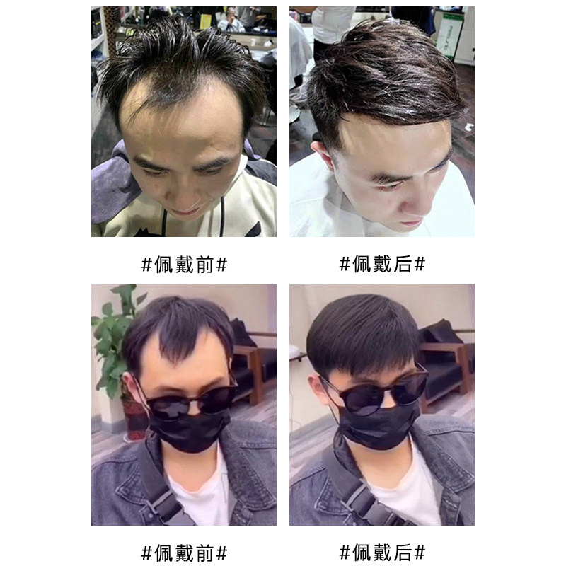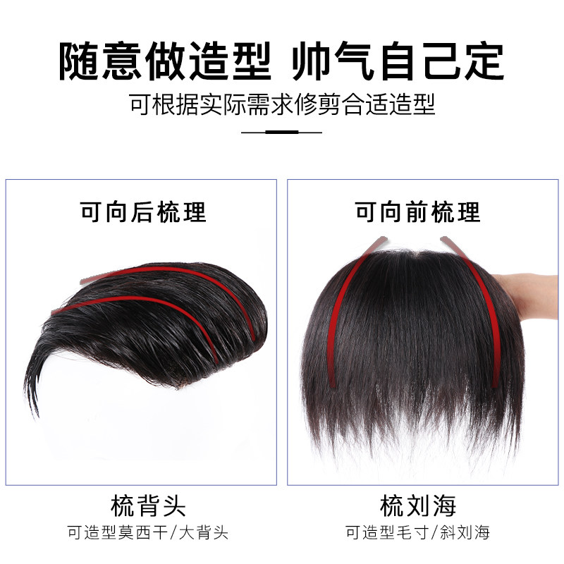 Hairline wig patch men's forehead invisible biological scalp real hair replacement M-type high forehead bangs wig