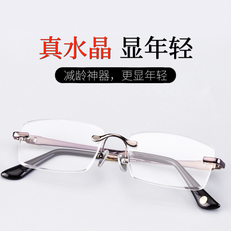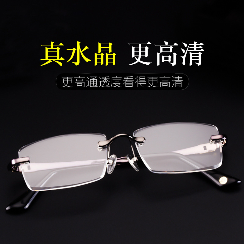Natural crystal stone presbyopic glasses East China Sea cut edge frameless men's high-definition wear-resistant old light glasses middle-aged and elderly women