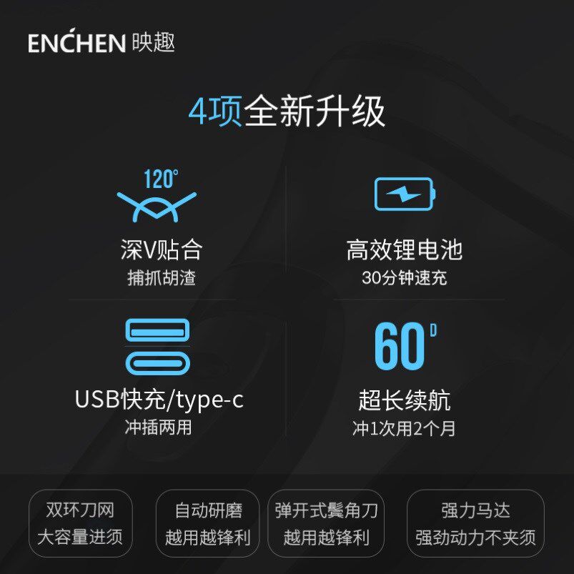 Xiaomi Mijia Yingqu Razor Men's Electric Shaver Three Heads Washable Automatic Razor Portable Charging