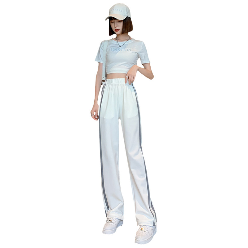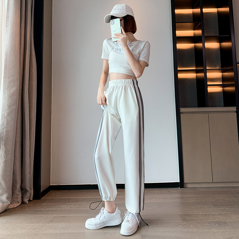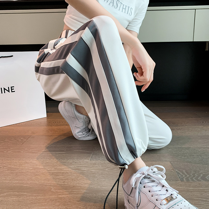 White Sports Pants Woman Summer Thin style Loose Bunches Light Cage Pants Mosquito Repellent Casual Thick Cotton Pants Straight Drum Wide Pants Spring Autumn