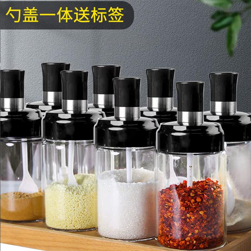 Seasoning bottle spoon cover one seasoning jar household sealed kitchen storage seasoning jar glass salt monosodium glutamate seasoning box