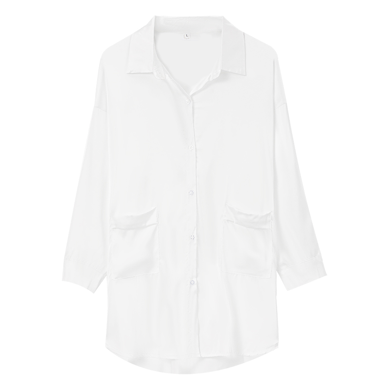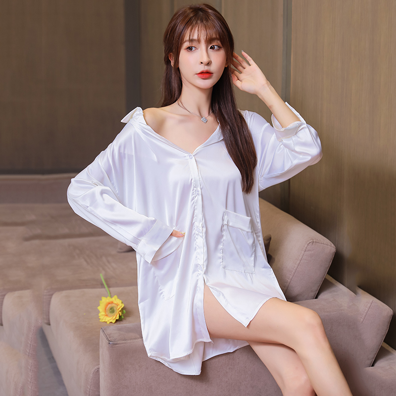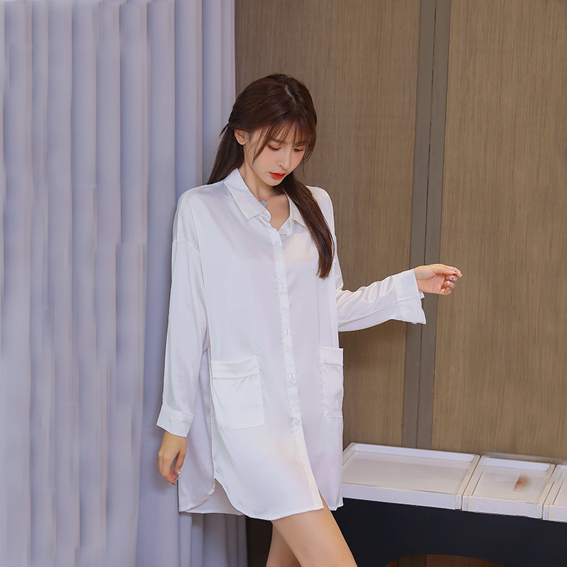 Boyfriend Shirt Sleepwear Snowspun Women's Summer 2021 Spring Autumn New Long Sleeve Long Version White Lining Ice Silk Sleeping Dress