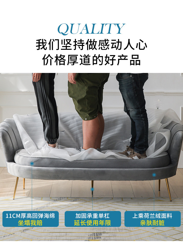 Fabric sofa small apartment Nordic light luxury bedroom clothing store beauty salon reception leisure net red double three people