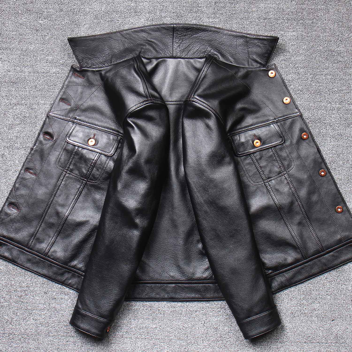 New products imported top layer calf skin leather casual fur coat men's single button locomotive leather jacket