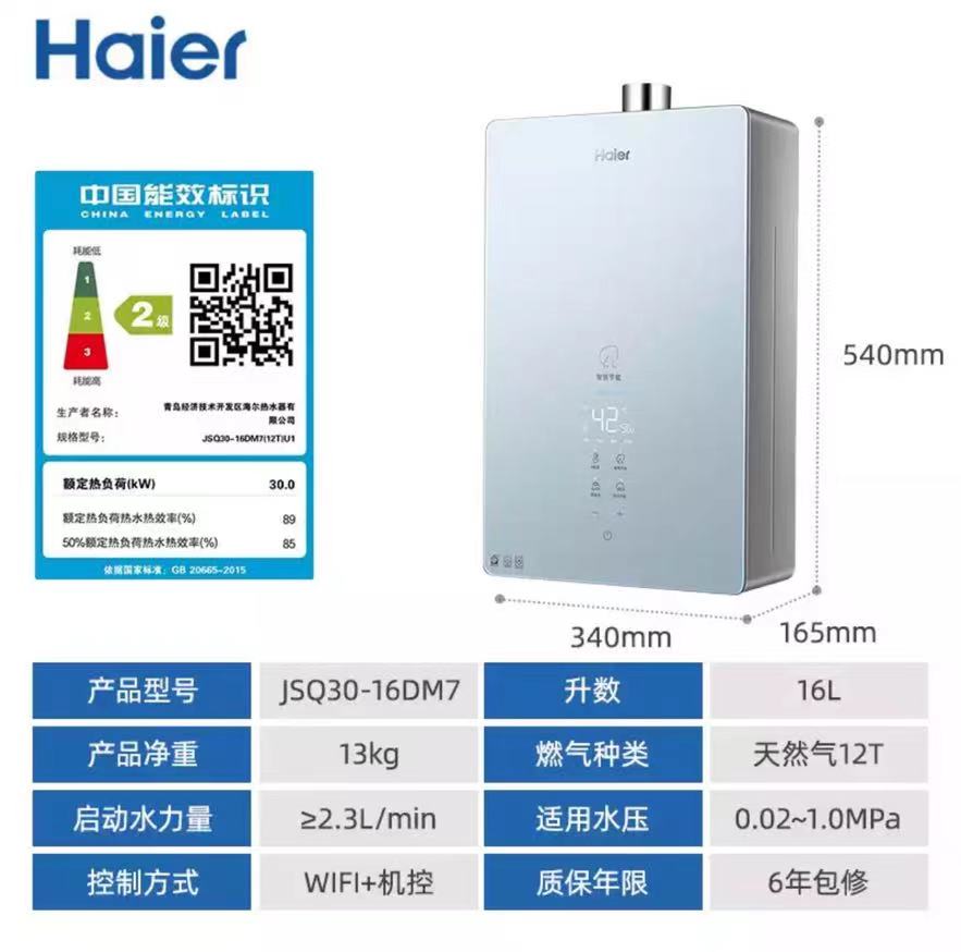Haier 16L Gas water heater Gas Full Screen Glass Panel JSQ30-16DM7 (12T) U1