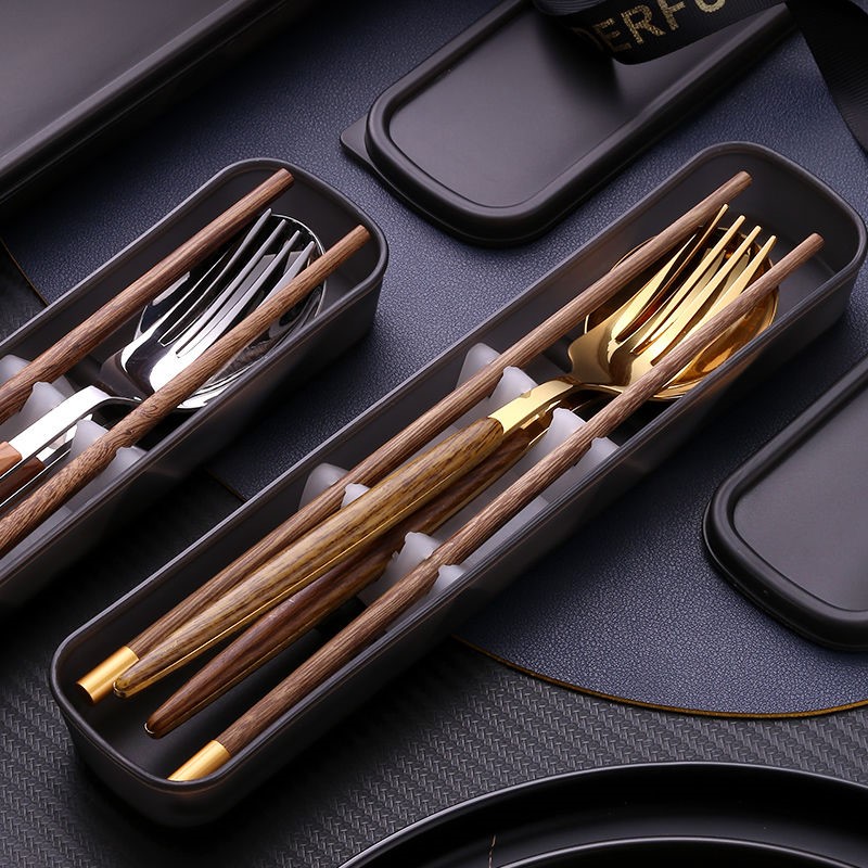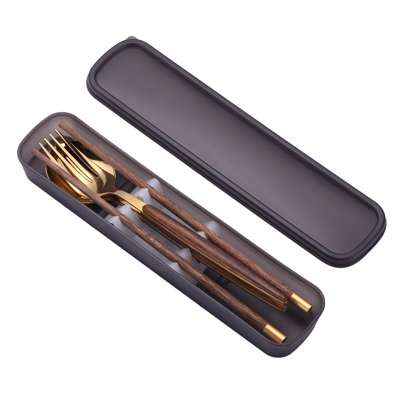 Portable chopstick spoon suit one person food tableware Three sets of stainless steel fork single student cute containing box