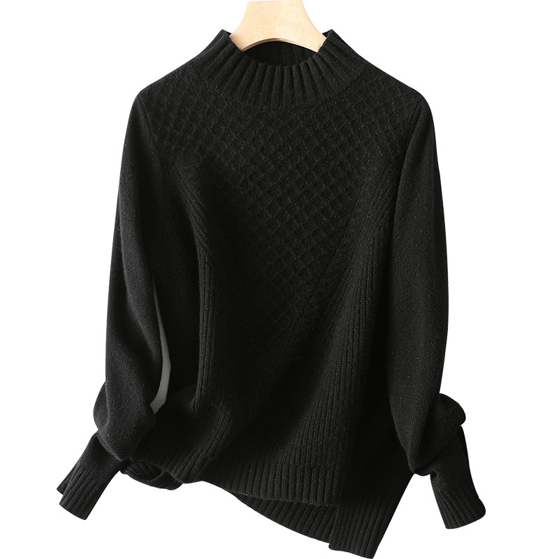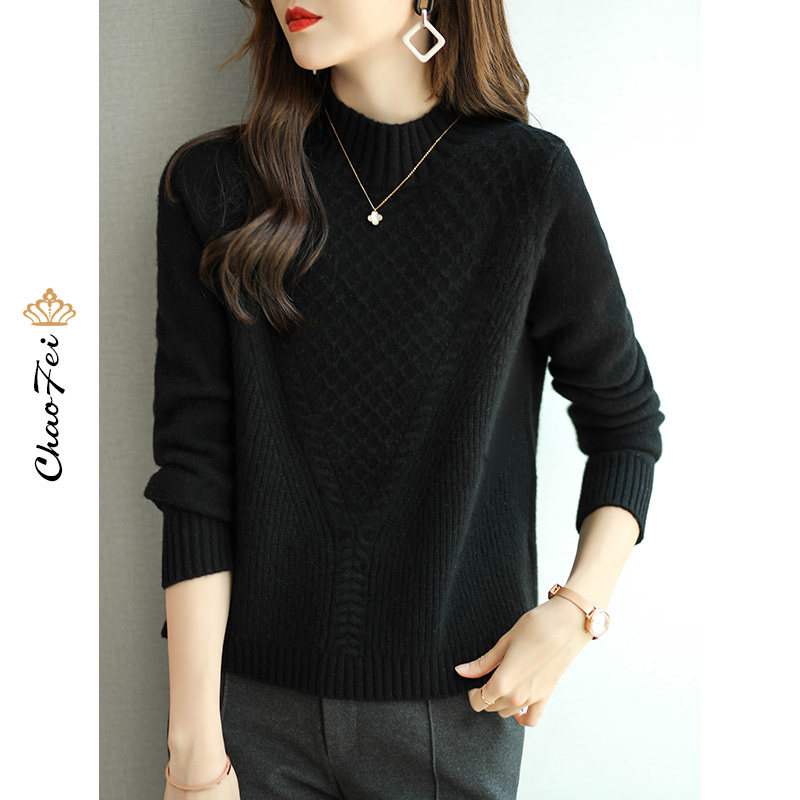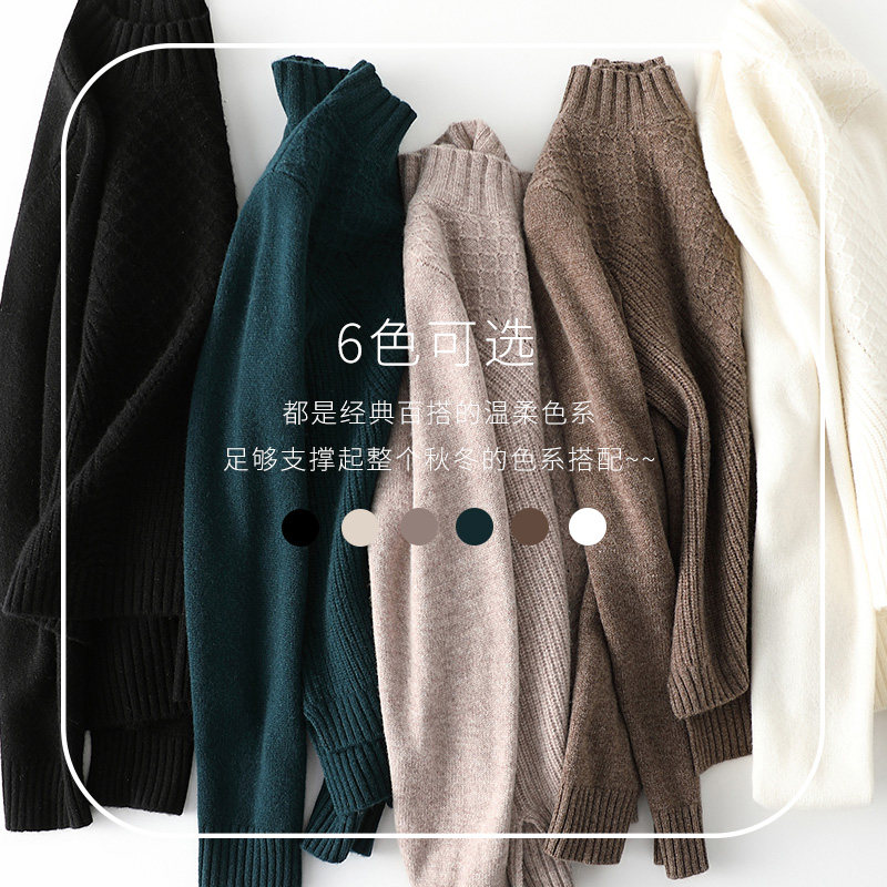Black long sleeve goat sweatshirt 2021 new set head and half high collar sweater lady autumn winter outwear thickened knit cardiovert