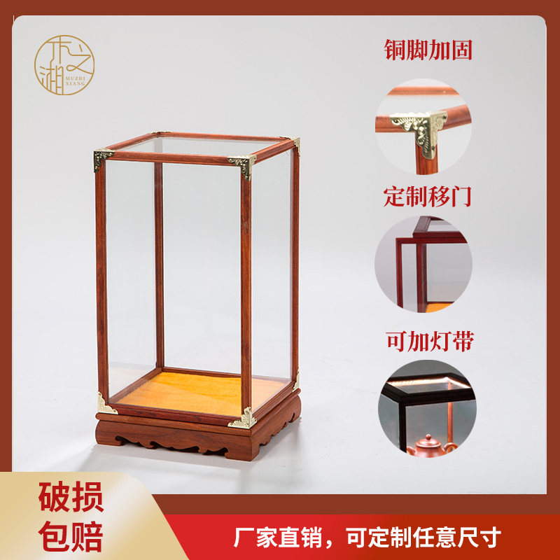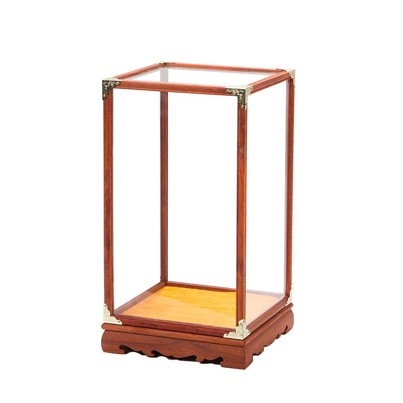 Redwood glass dust cover Buddha vase vase antique crafts decoration base treasure cage display box pear can be customized