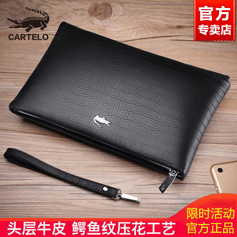 Caravan Crocodile Men's handbag genuine leather Large capacity Laced Phone Driver's License Envelope Wallet Head Layer Bull Leather Soft