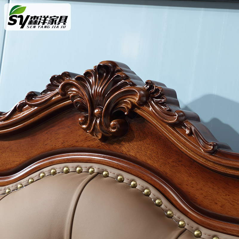 New European And European Style Countryside Retro Light Lavish Bedside Sculptures Soft Lean Foreskin Master Bedroom Air Pressure Drawer Storage Solid Wood Bed