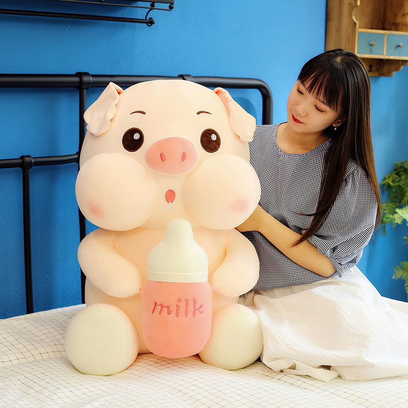 Milk Bottle Pig Paparazzi Fur Suede Toy Cute Children Pig Hug Pillow Girls Doll Super Cute Cloth Doll Birthday Present