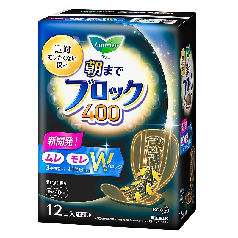 Japan's original imported sanitary napkin Kao super absorbent 400mm night cotton soft anti-side leakage 12 pieces aunt towel