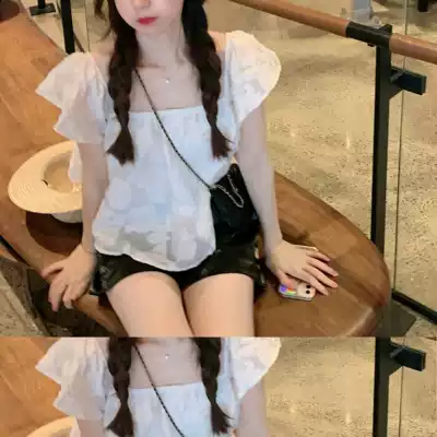 MEETBONNIE Zhao Baoni gold years cut flower embossed top female summer temperament jacquard collar small shirt