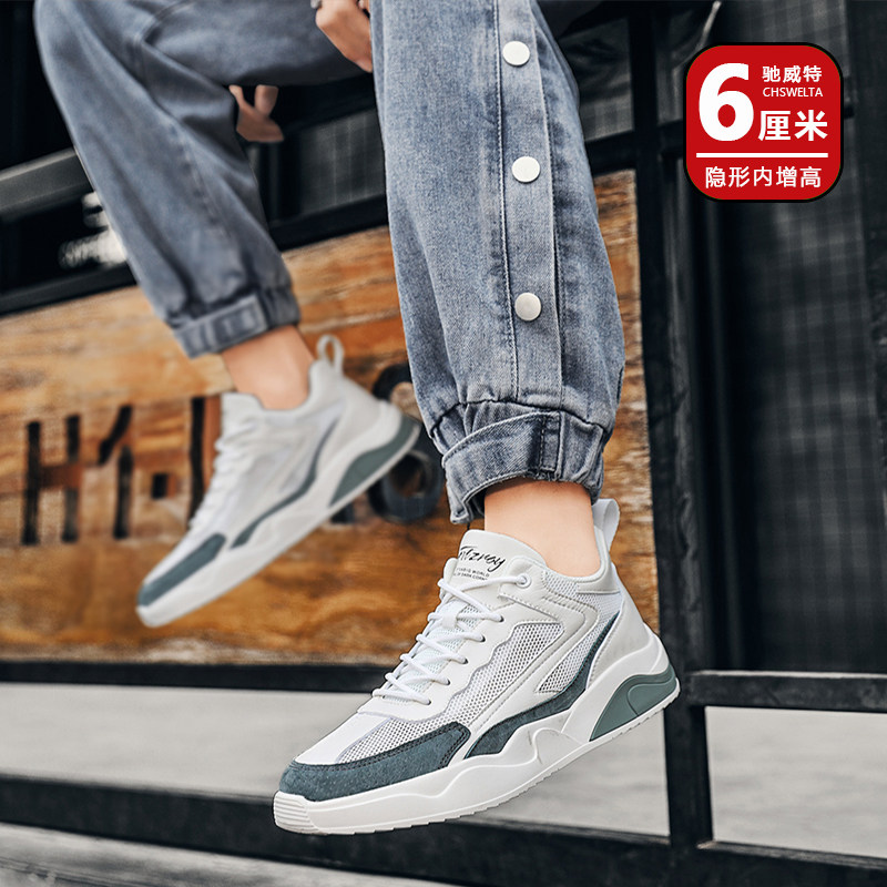Height-increasing shoes men's trendy shoes 6cm heightened leather sports casual shoes summer breathable mesh all-match small white shoes for men