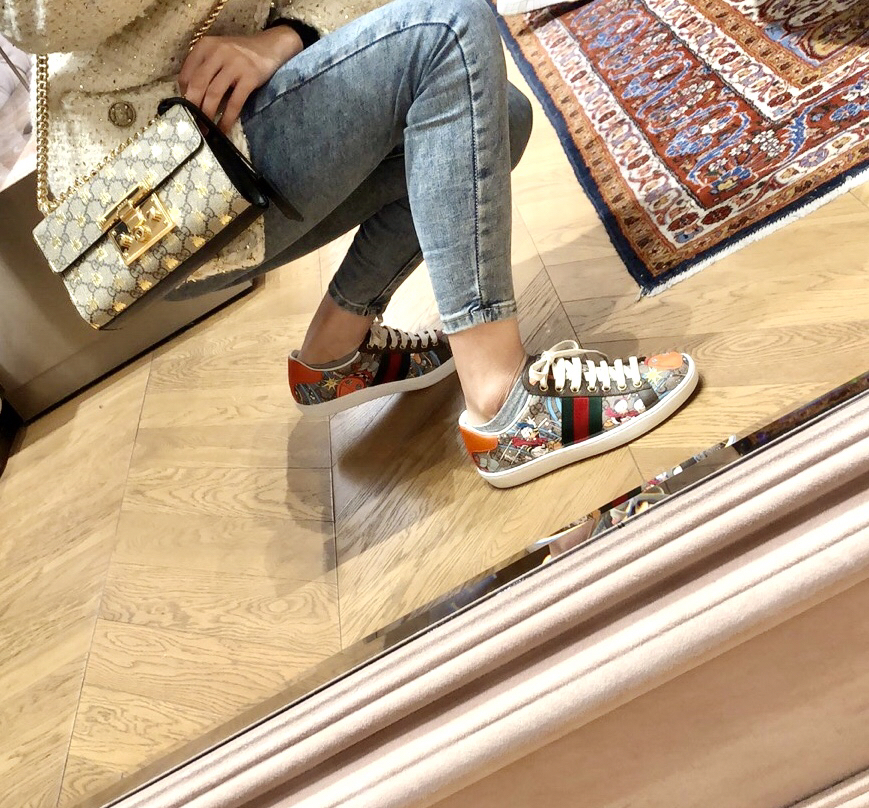 GG Classic Bees Women's Shoes Striped White Shoes Men's Shoes Low-Top Casual Shoes Couple Shoes